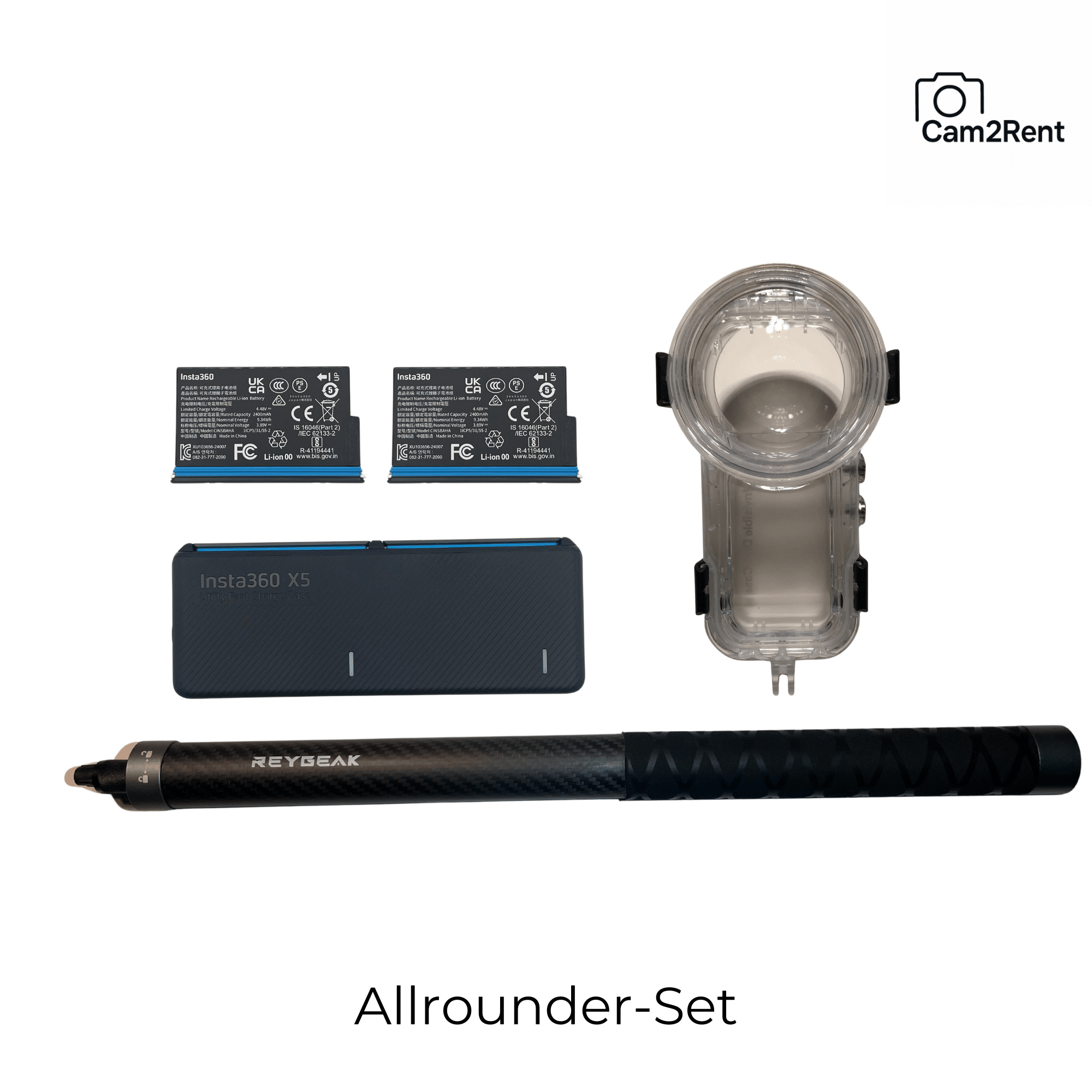 Damit du die Insta360 X5 optimal nutzen kannst, bieten wir verschiedene Miet-Sets mit passendem Zubehör an. So entscheidest du selbst, welches Paket am besten zu deinem Projekt passt: